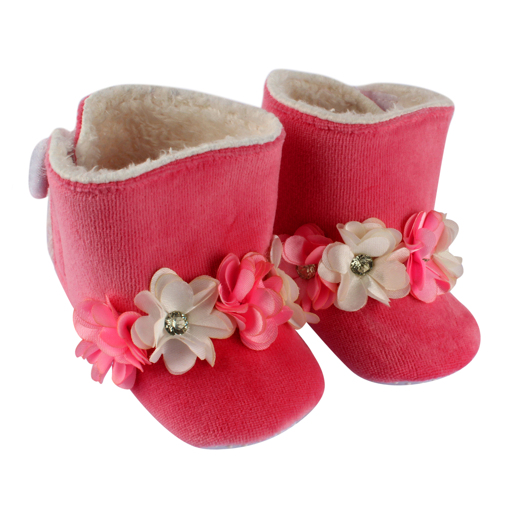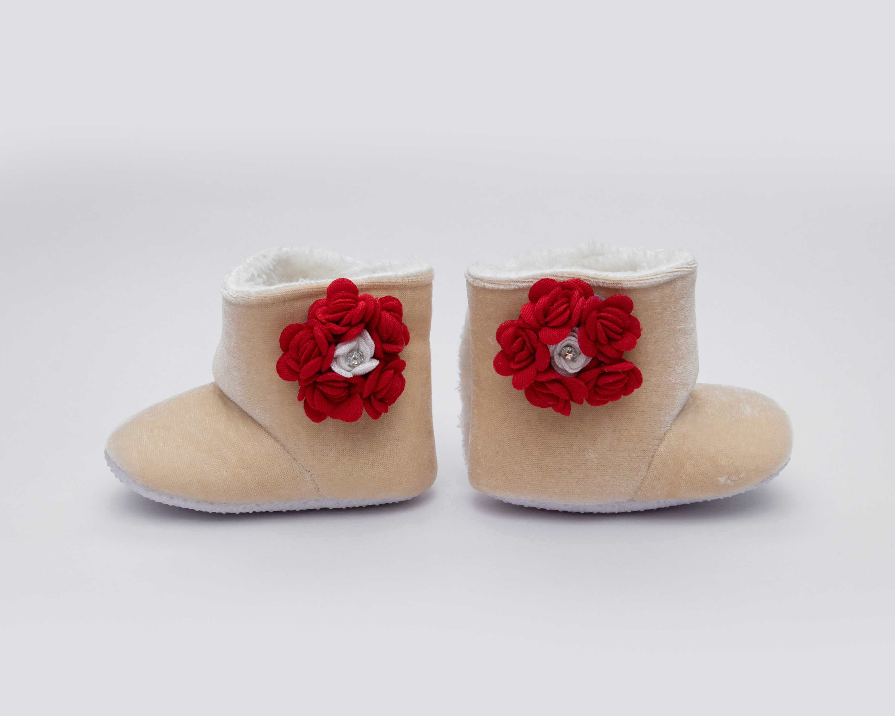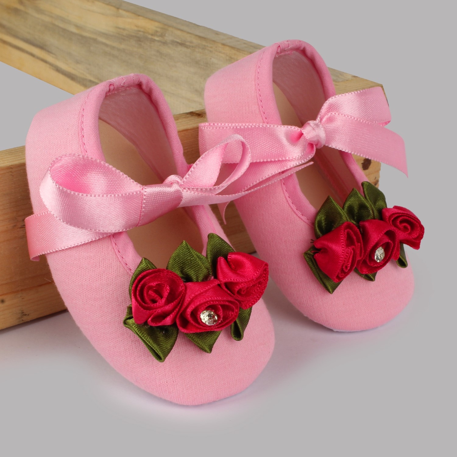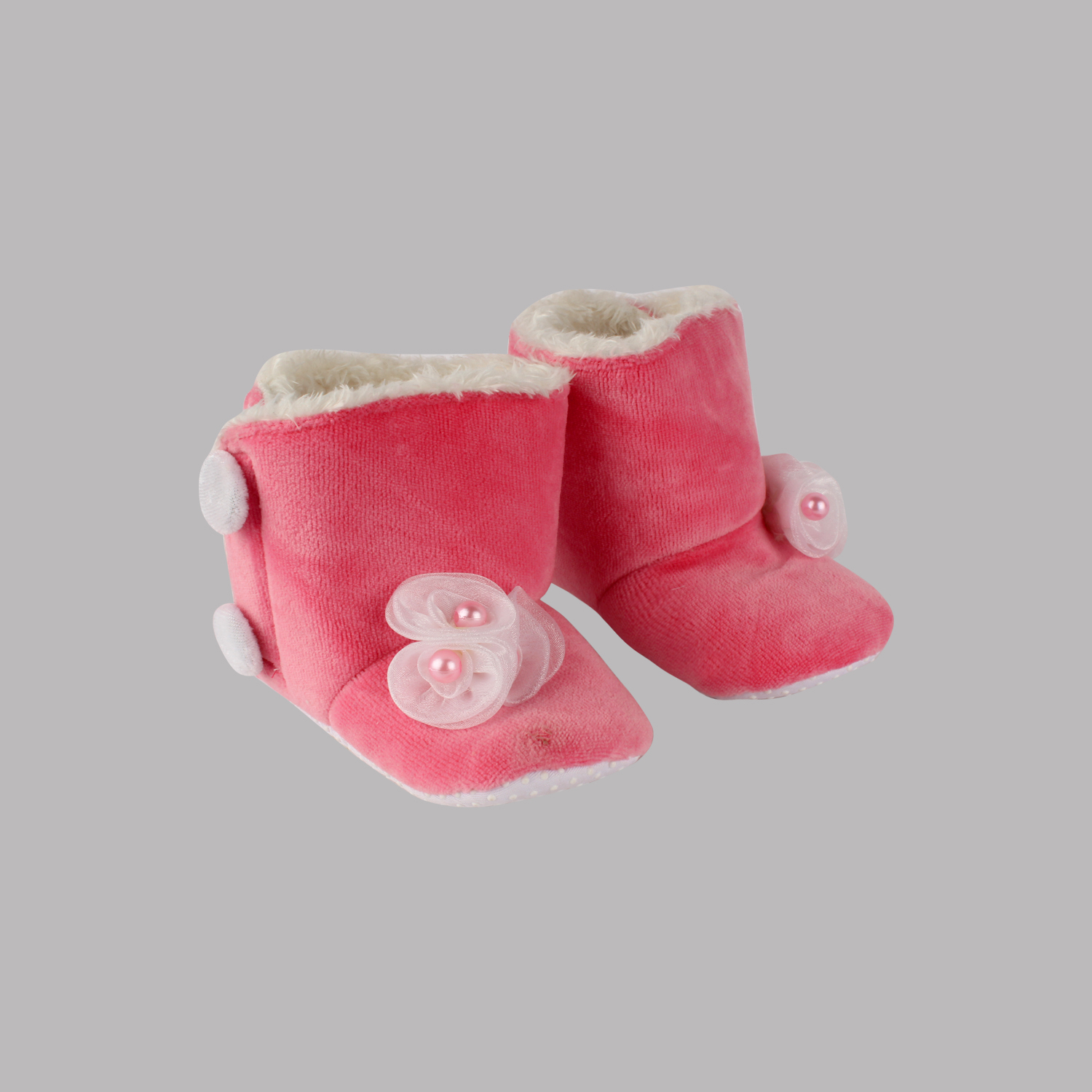 Daizy booties with 3 flowers and leaves_Baby pink (Daizy_228)