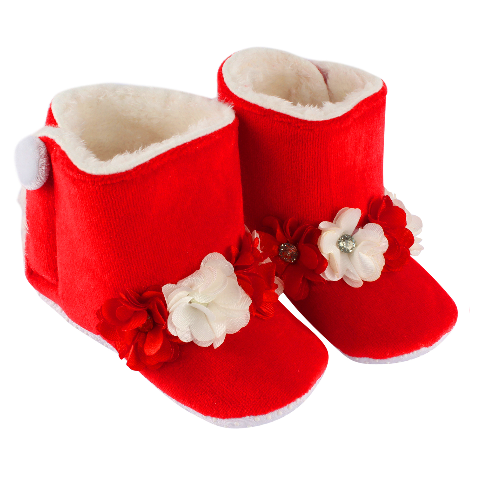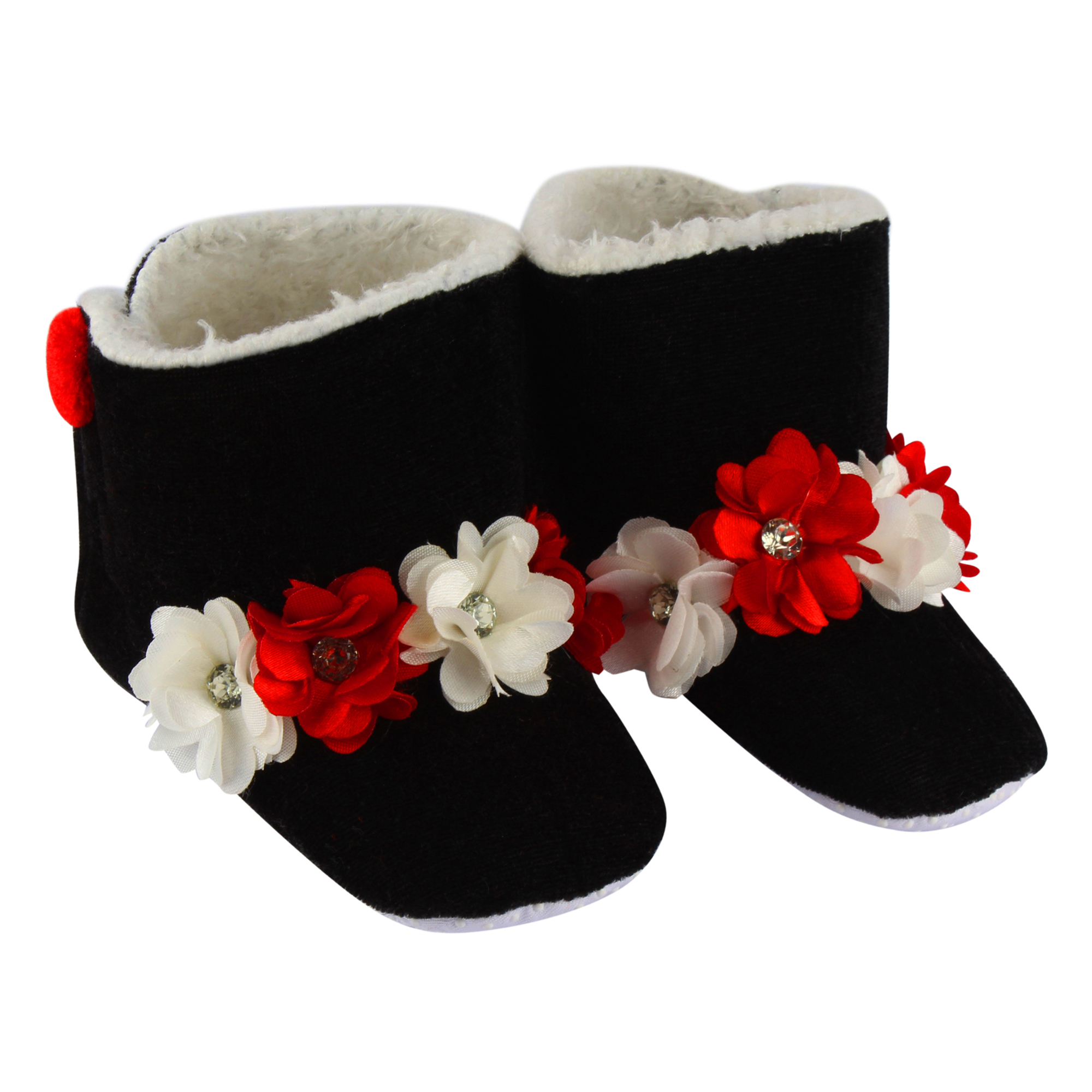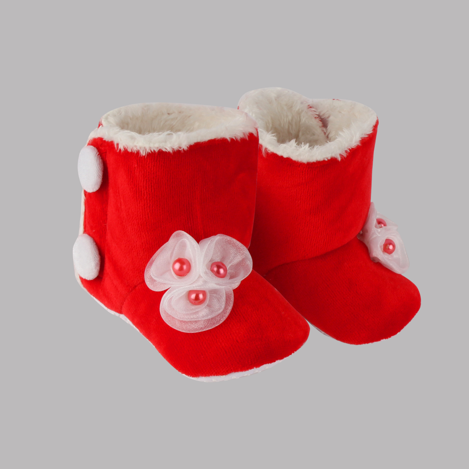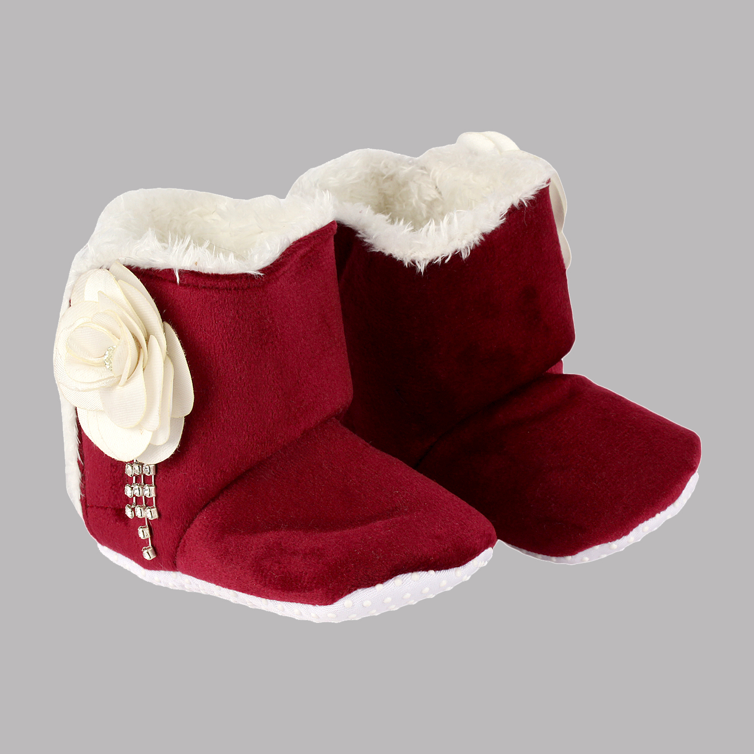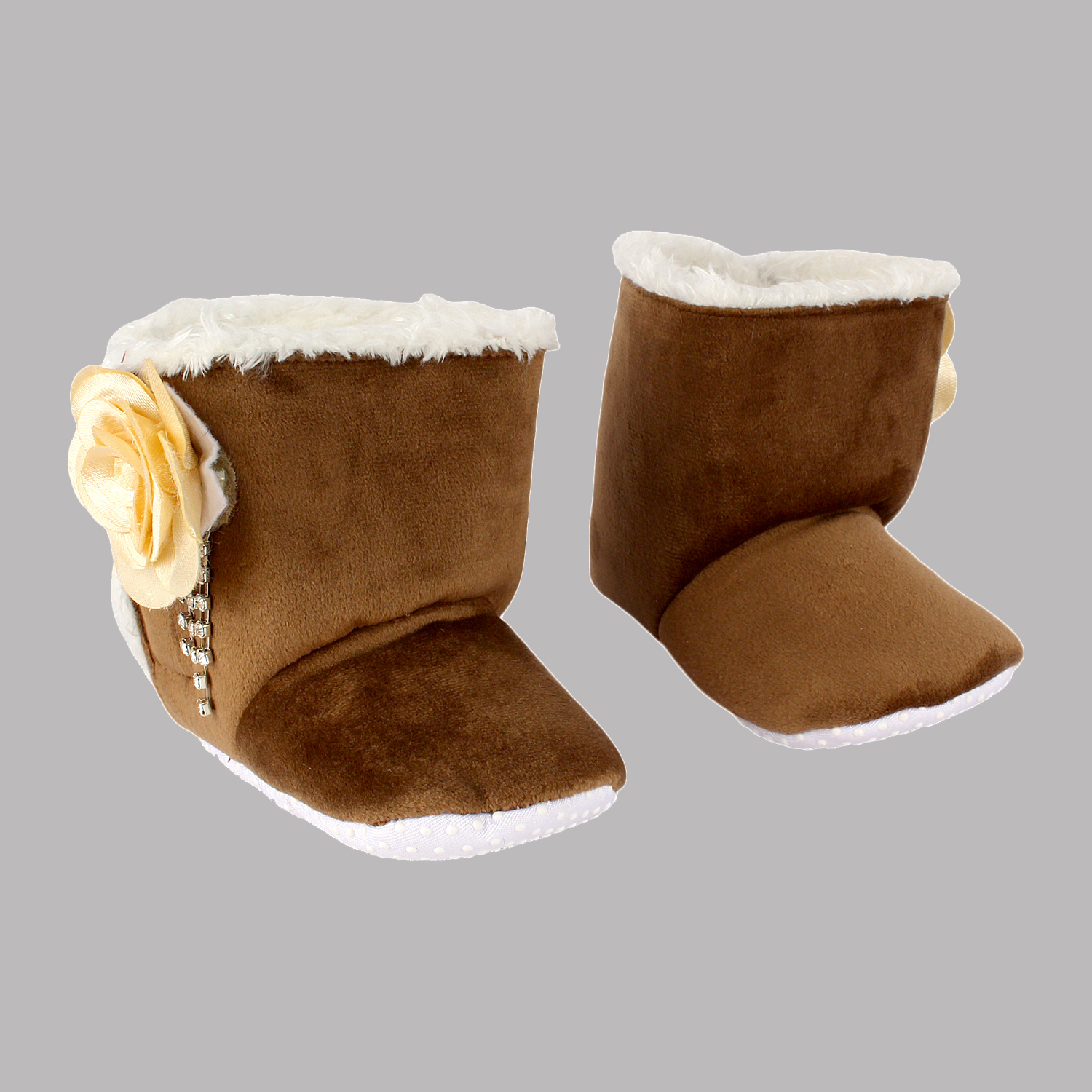Daizy booties with 3 flowers and leaves_Baby pink (Daizy_228)