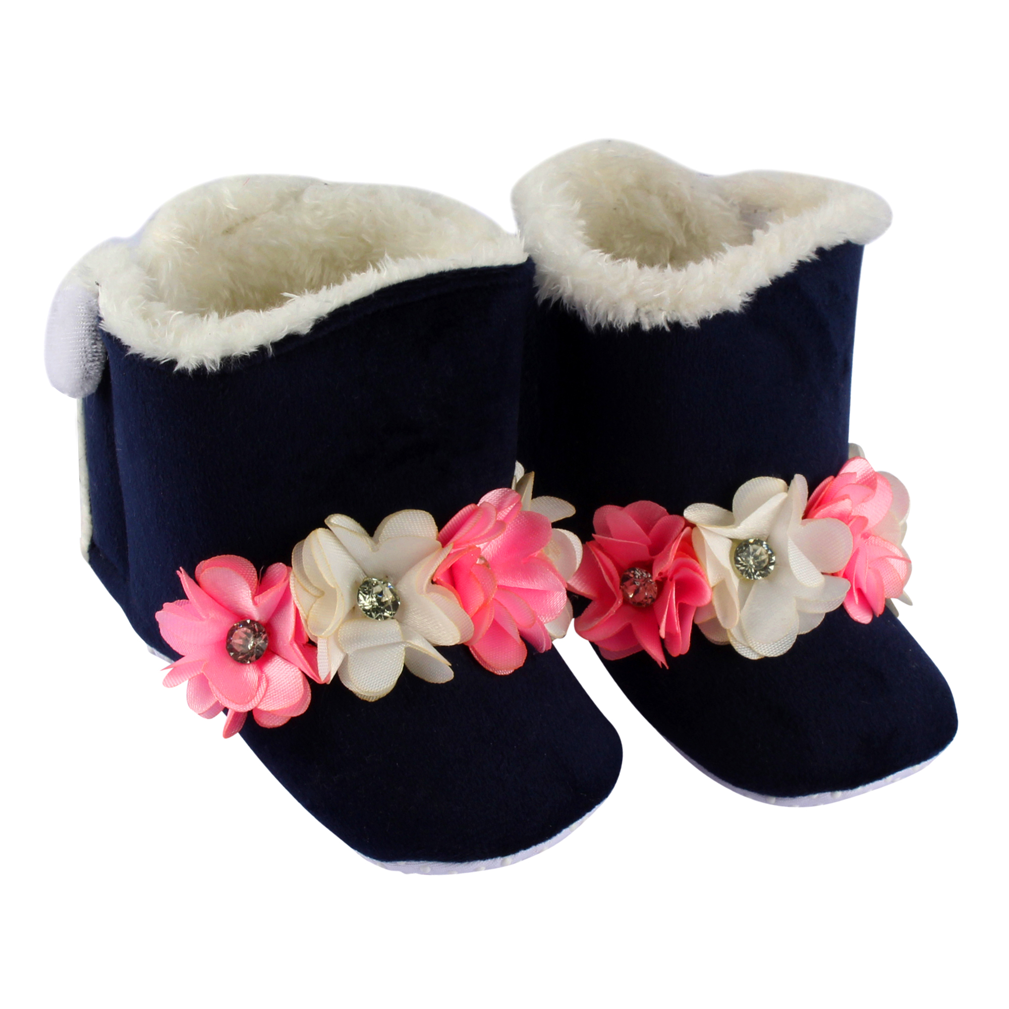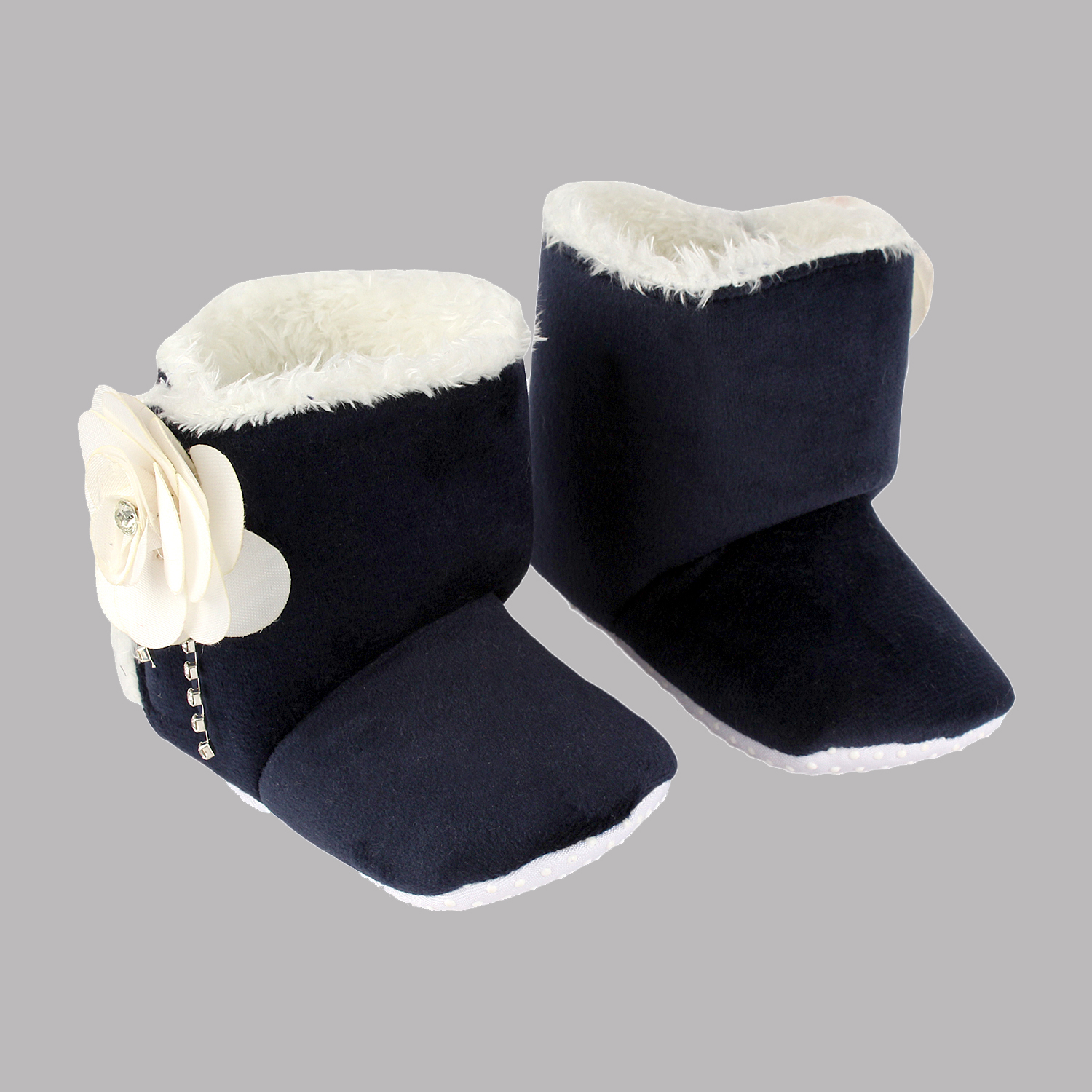 Daizy long shoes with flowers_navy blue (Daizy_151)