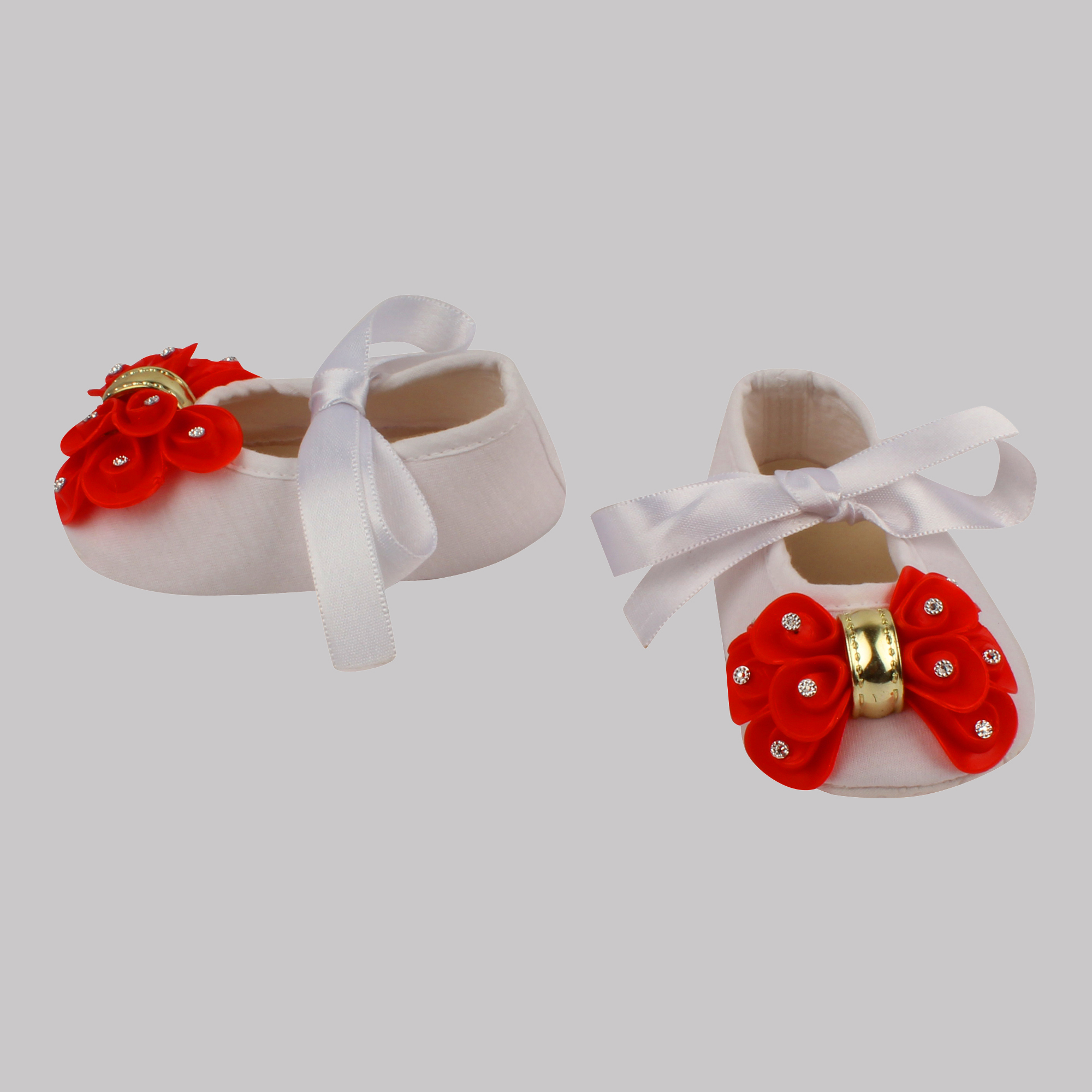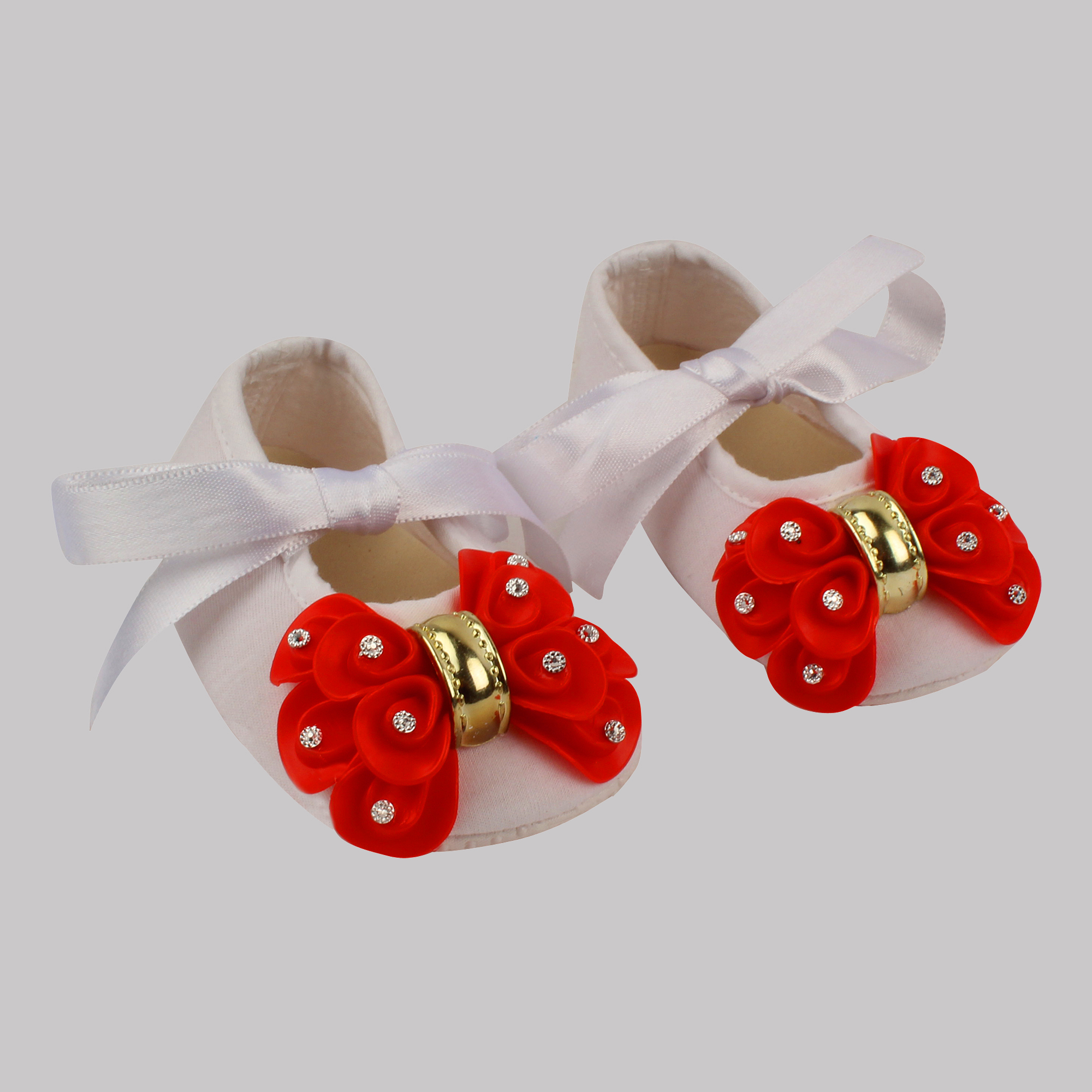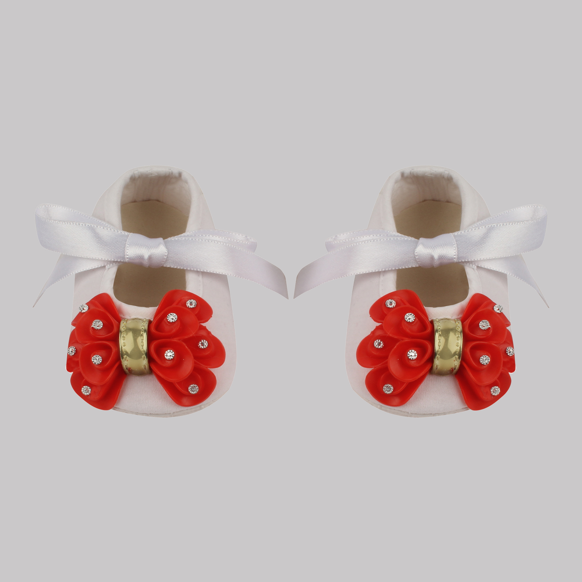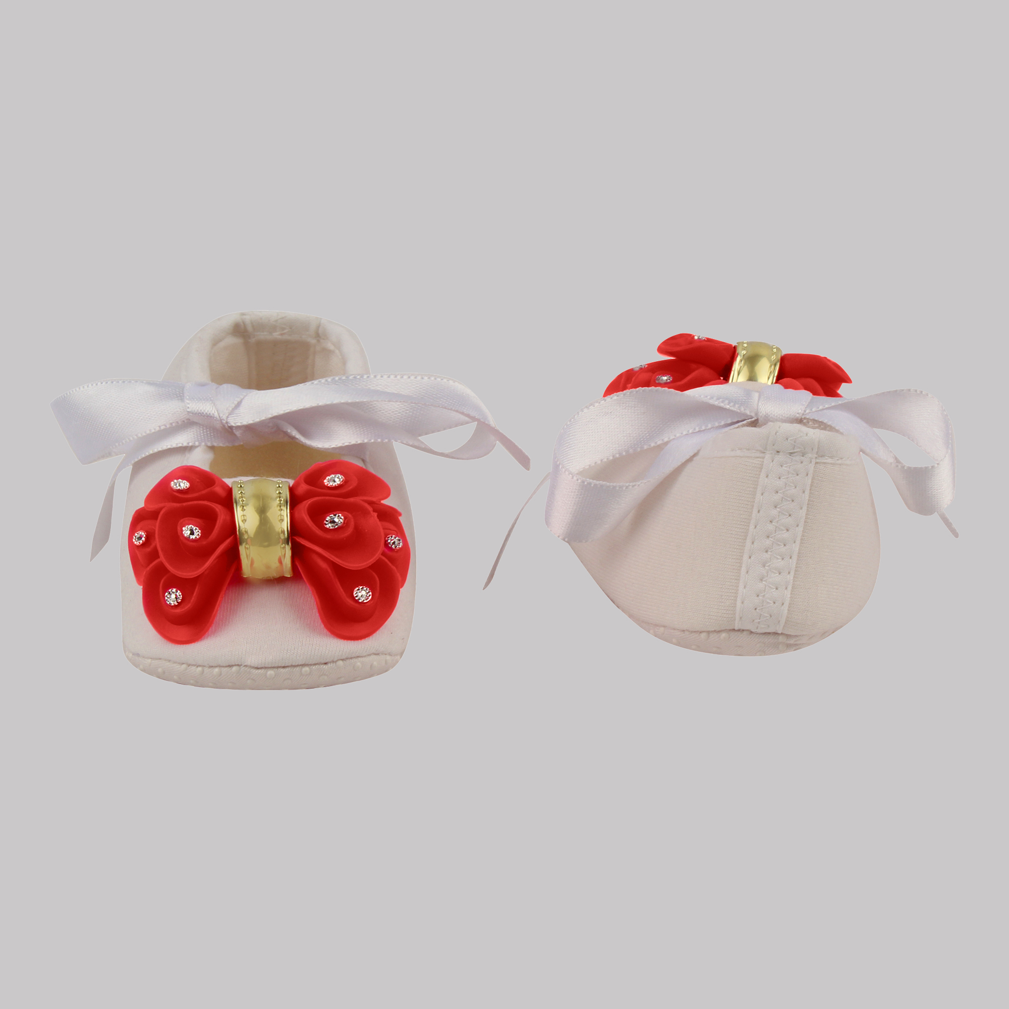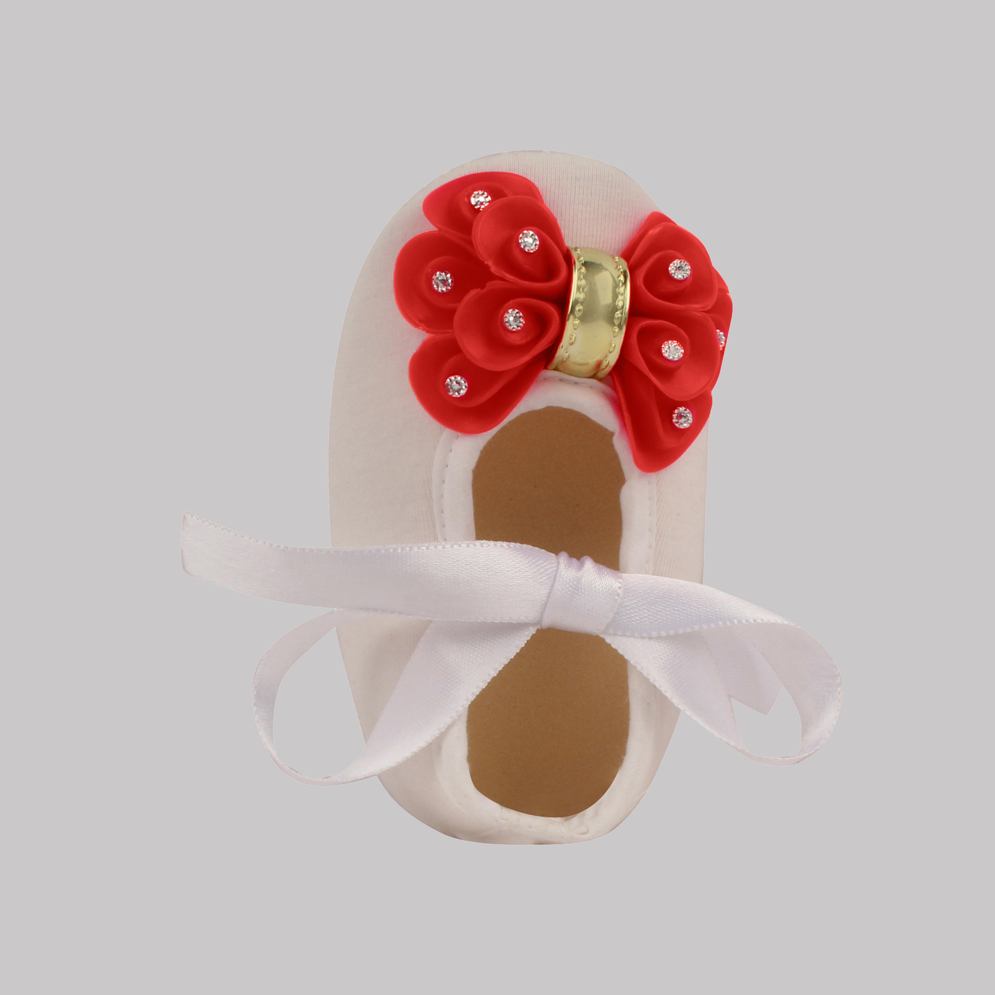 Daizy booties with red bow_white