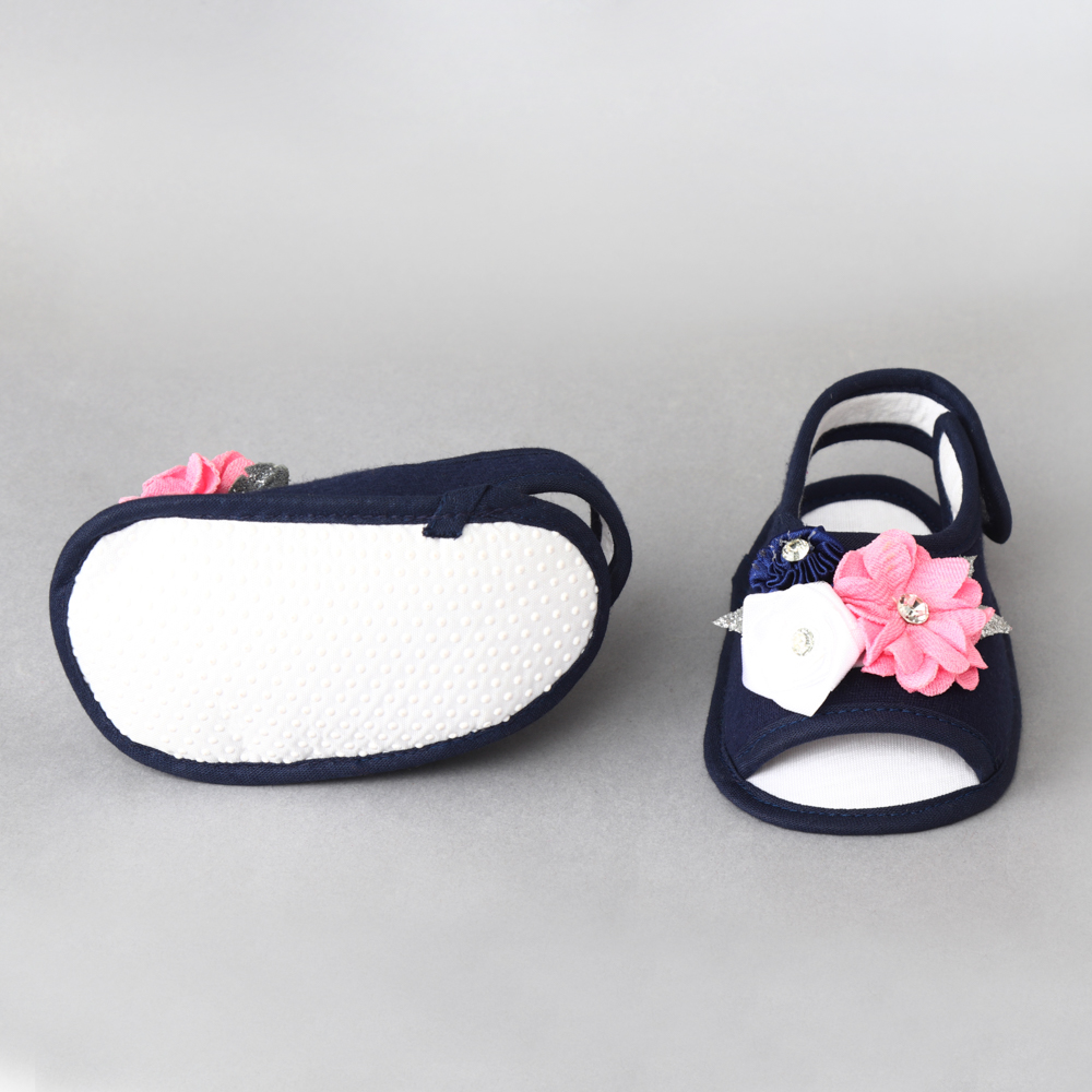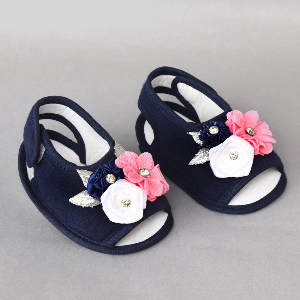 Daizy sandel with Bunch of flowers and leaf_navy blue