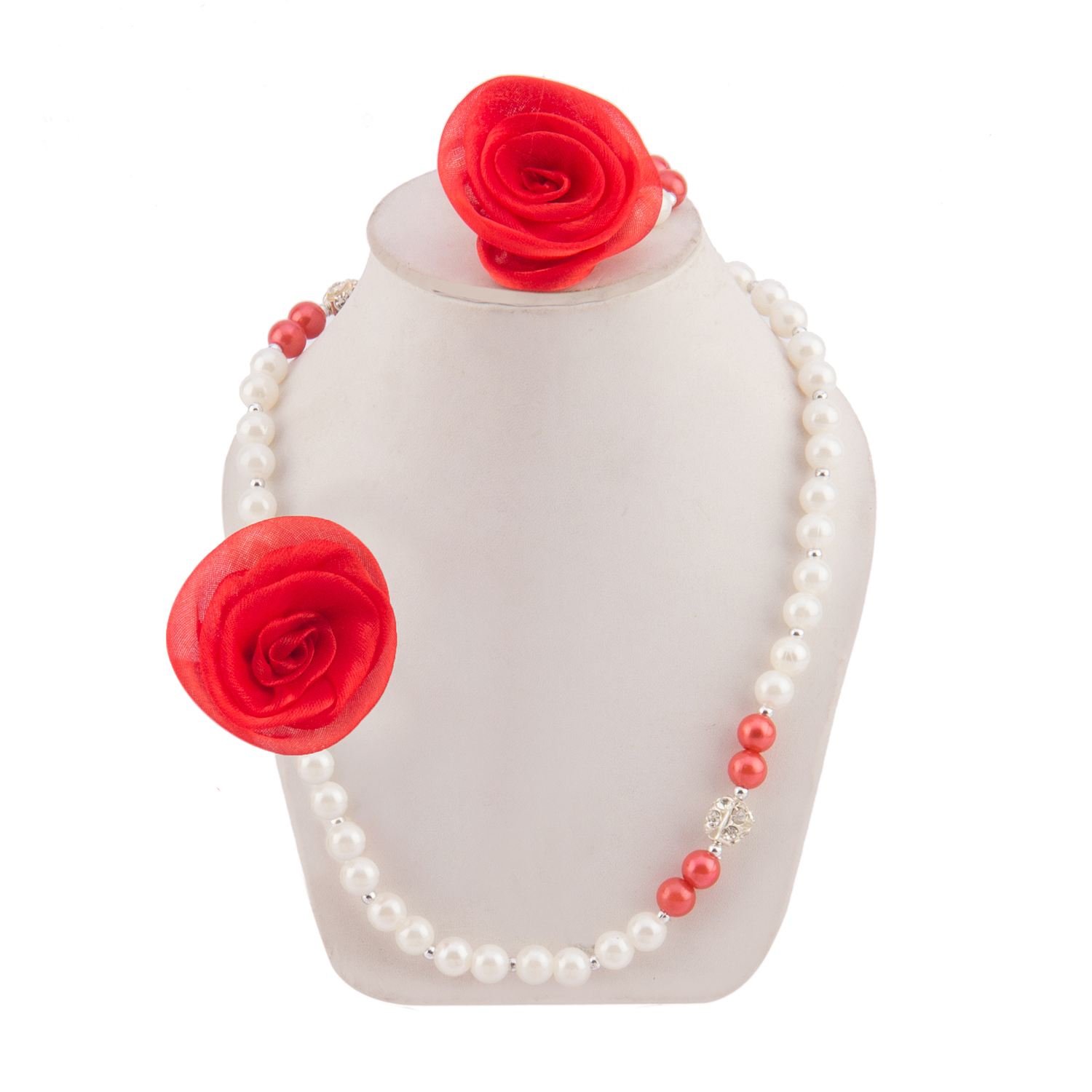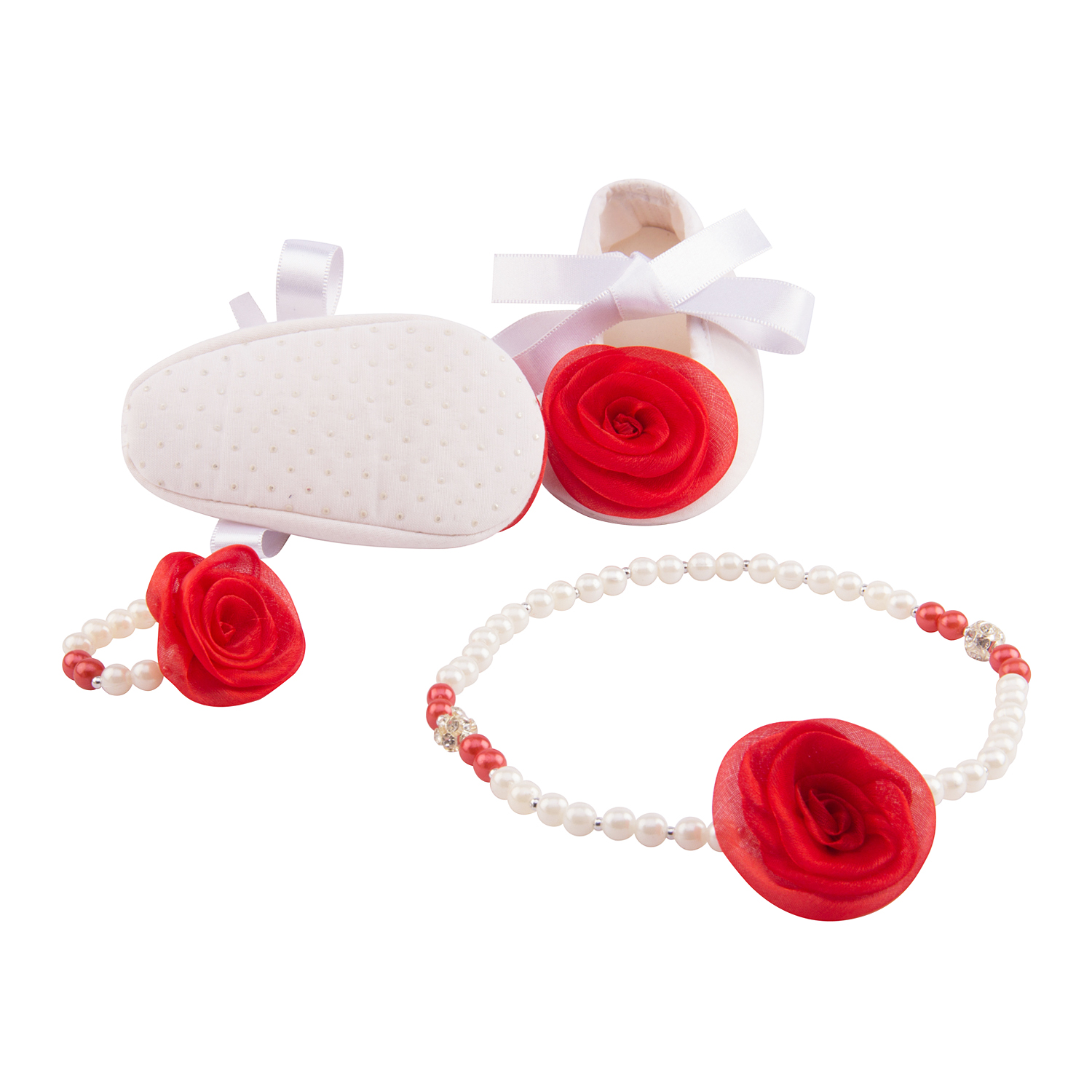 Daizy booties with necklace braclet set with red flower _white