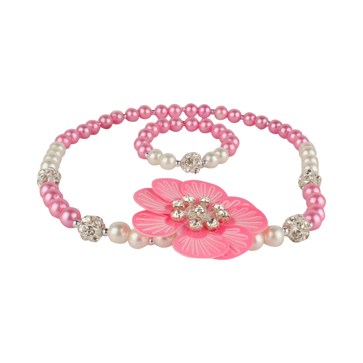 Daizy Pink Shimmer Flower Necklace Braclet Set