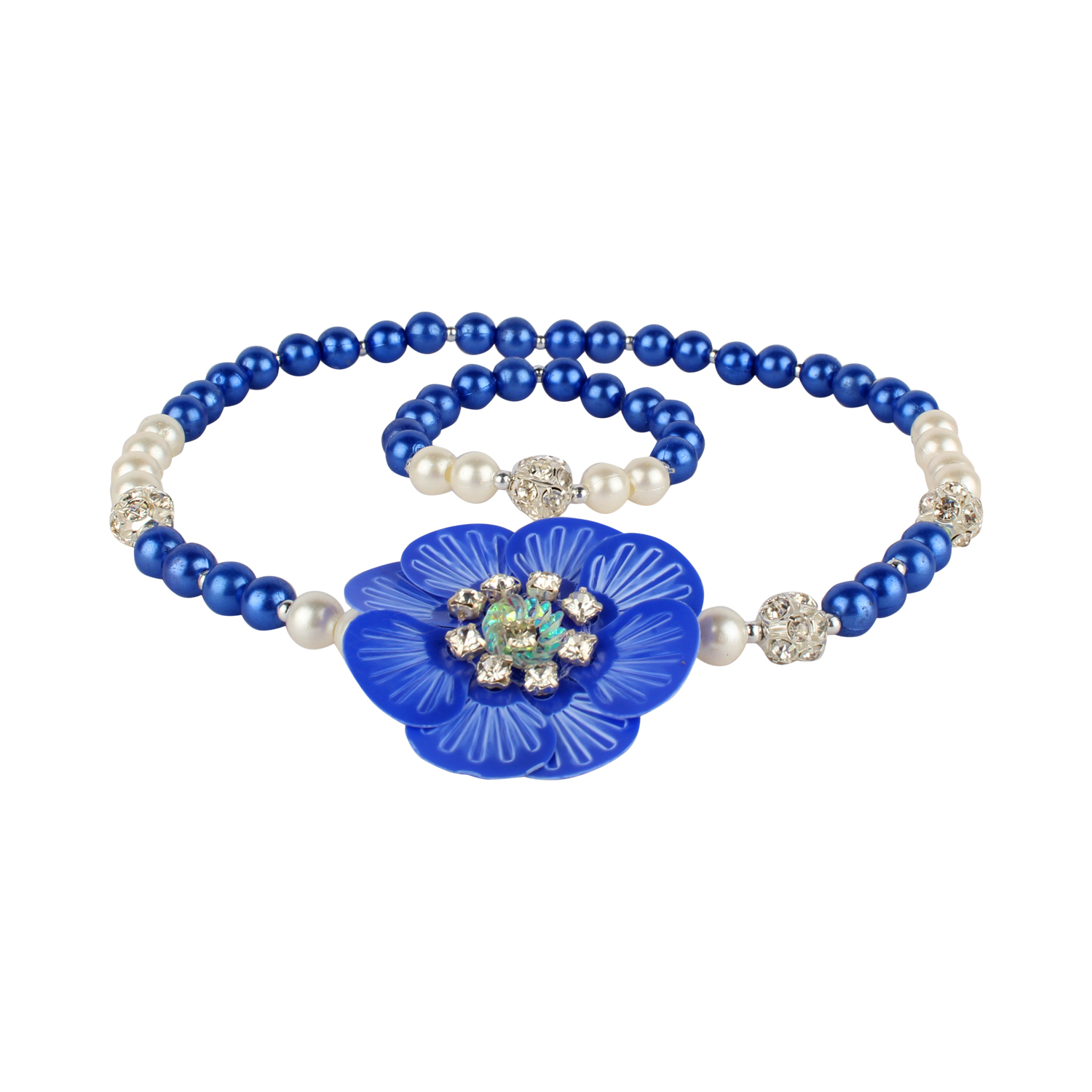 Daizy Blue Shimmer Flower Necklace Braclet Set