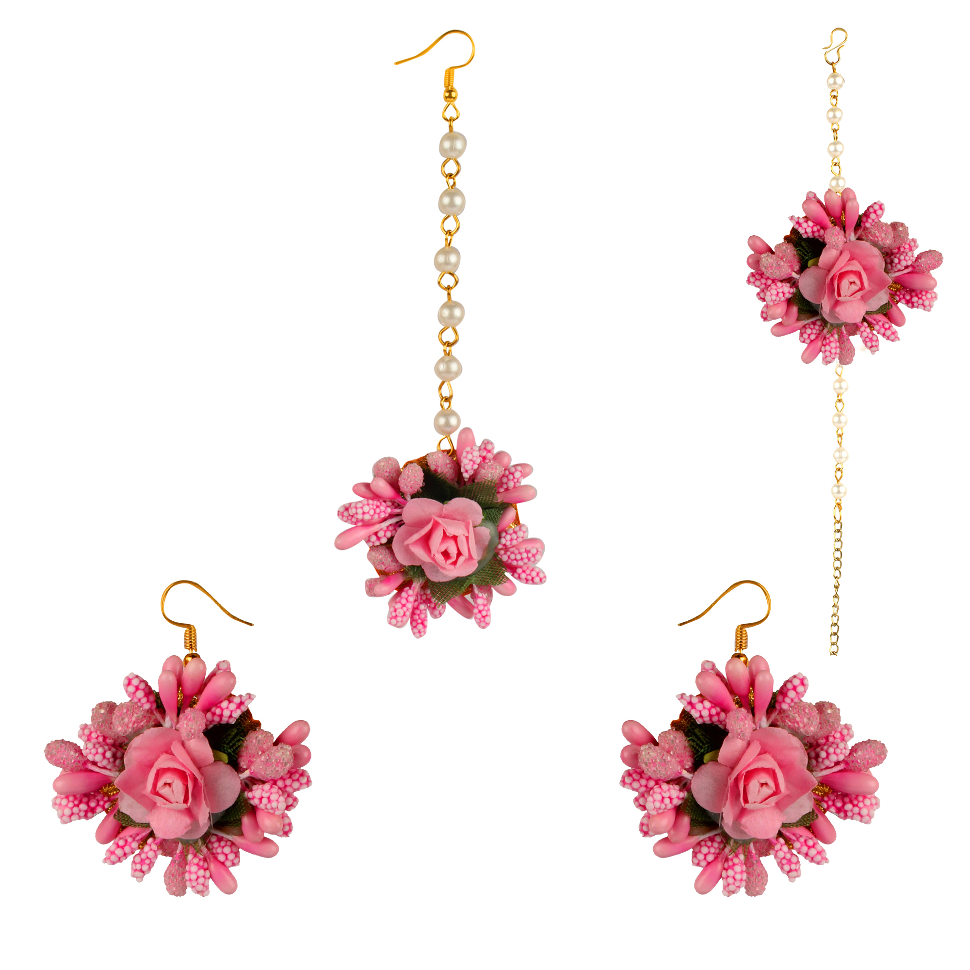 DAIZY ETHNIC MAAG TIKKA AND BRACELET EARINGS SET_BABY PINK