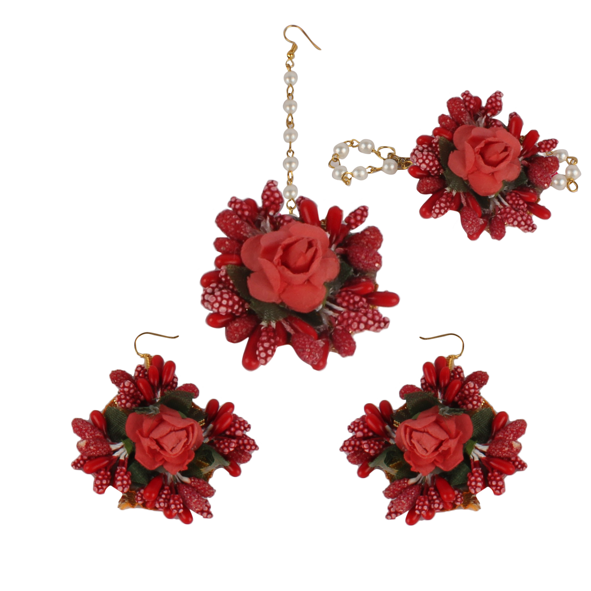DAIZY ETHNIC MANG TIKKA AND BRACELET EARINGS SET_RED