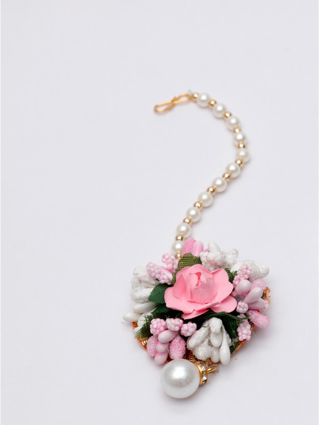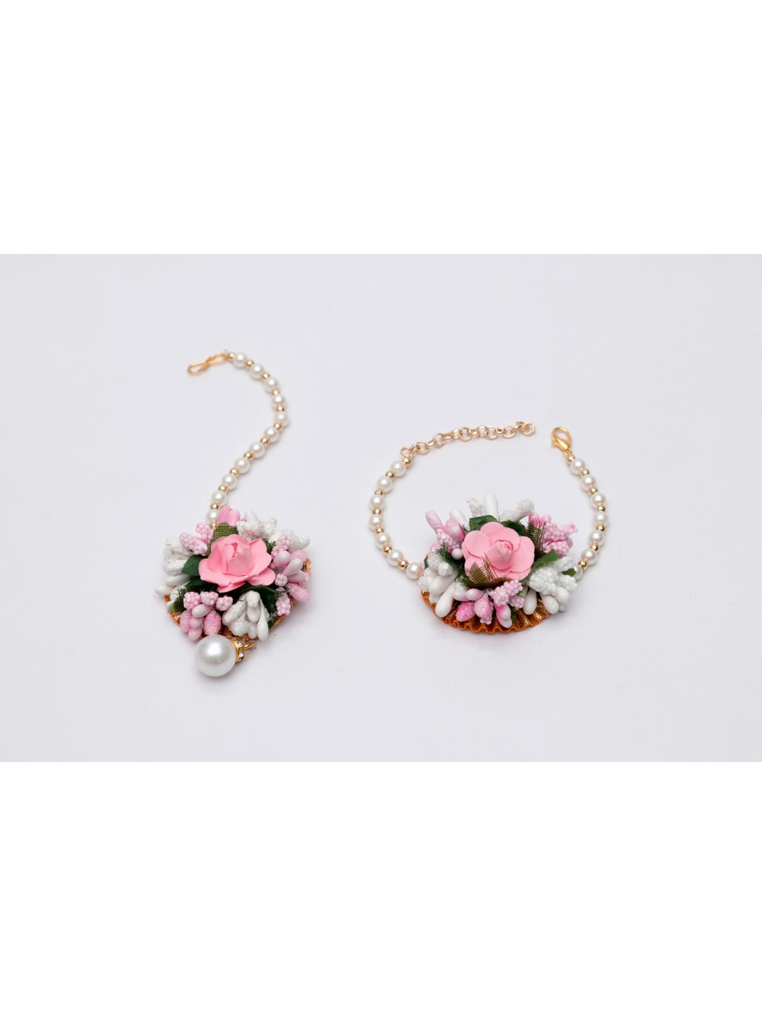 Daizy Ethnic Mang Tikka And Bracelet Set_Baby Pink