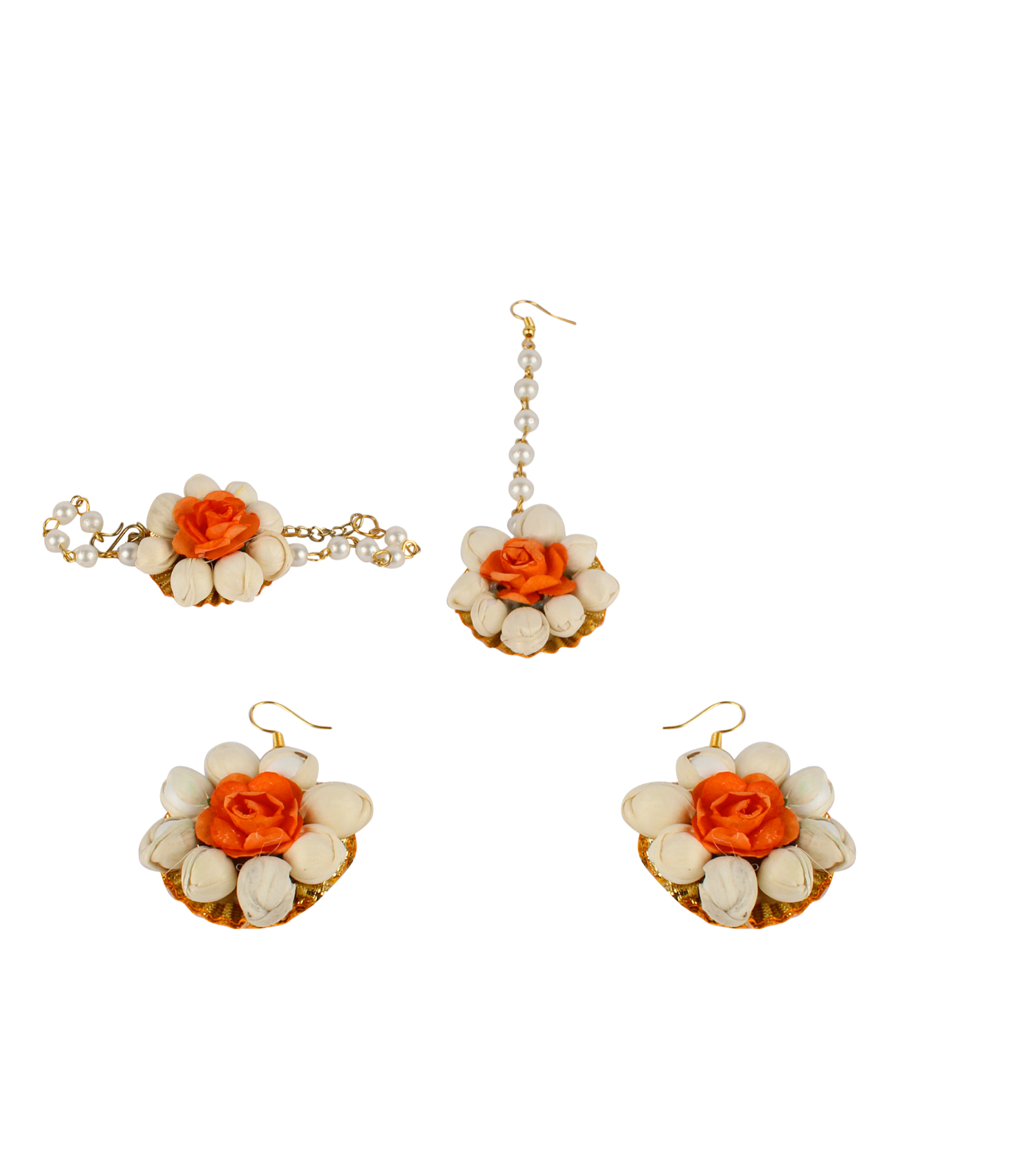 Daizy Ethnic Mang Tikka And Bracelet Earings Set_White And Orange