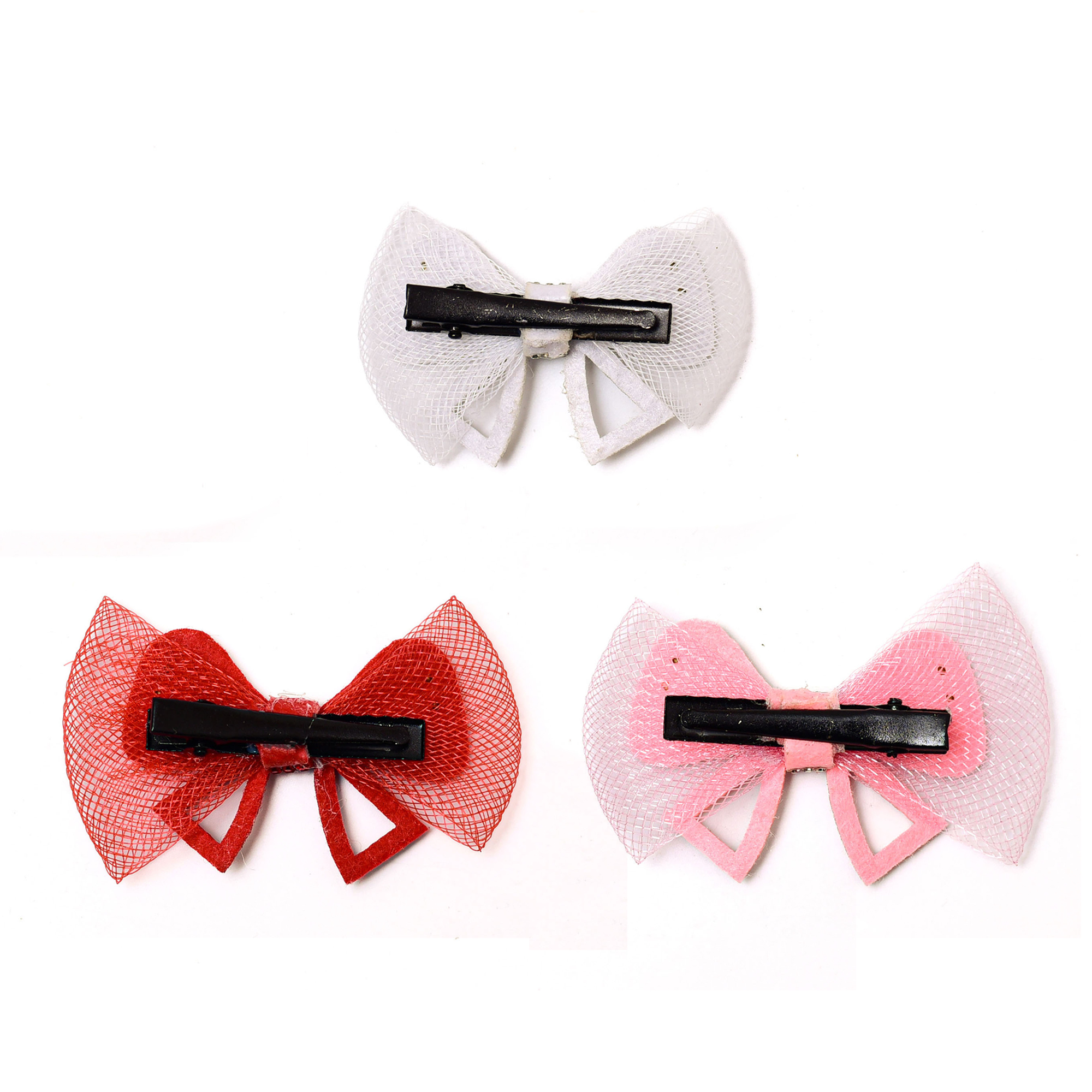 Daizy Bow Hairclip Combo Set_White,Red and Baby pink